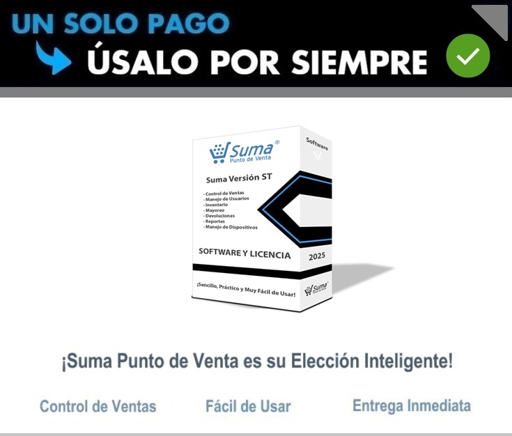 Llevate Suma Punto de Venta ST a UN SOLO PAGO Y ÚSALO POR SIEMPRE.